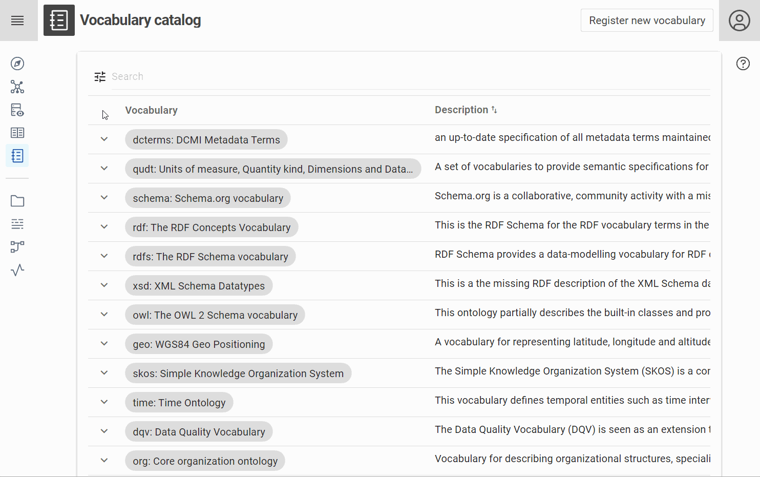 With Corporate Memory, you can develop progressively your vocabularies RDFS or your ontologies OWL to describes your knowledge graph.