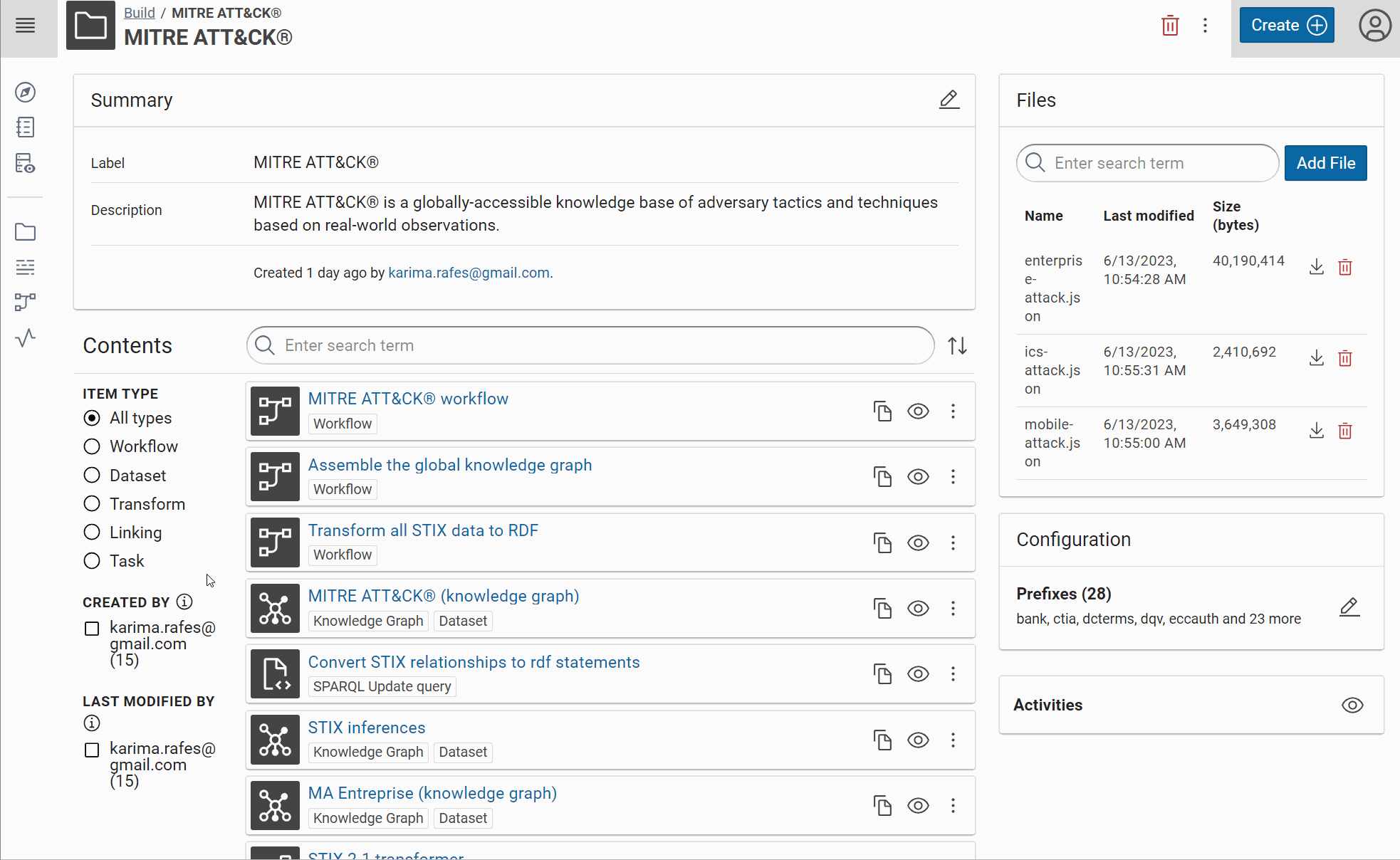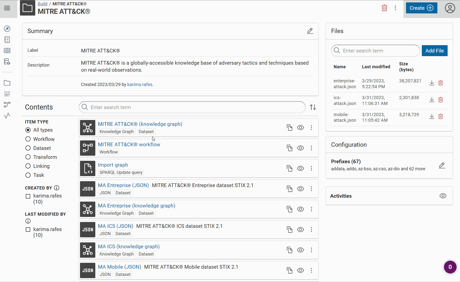 - Create a new Knowledge graph dataset “STIX inferences” with this IRI: https://attack.mitre.org/inferences
