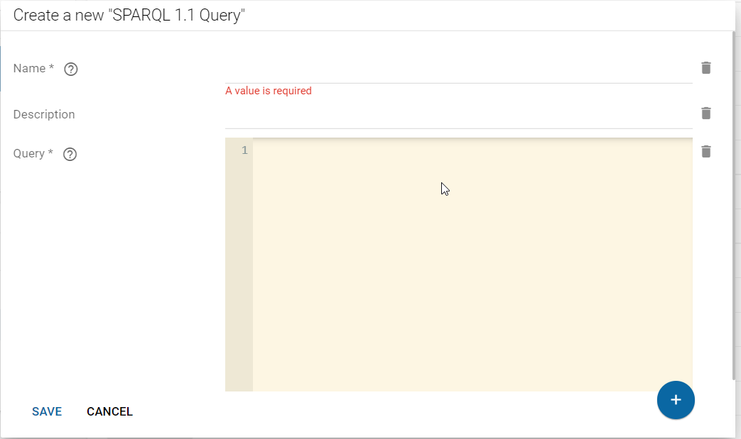 You can also create new resources by using a shaped form. One way to achieve this, is to select the class in the navigation tree on the lower left part in the Explore component and then click the Floating Action Button at the bottom or use the context menu on upper right side.