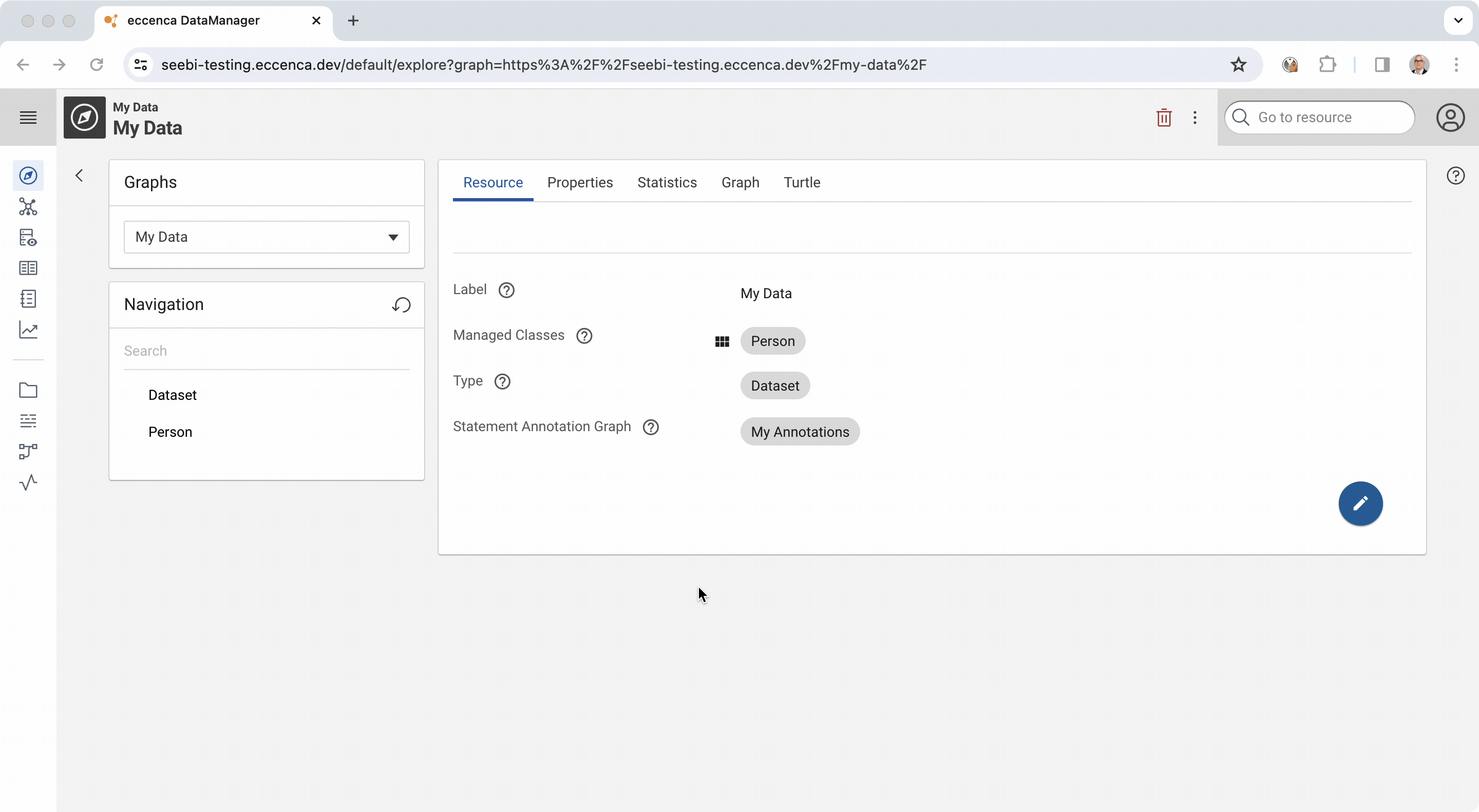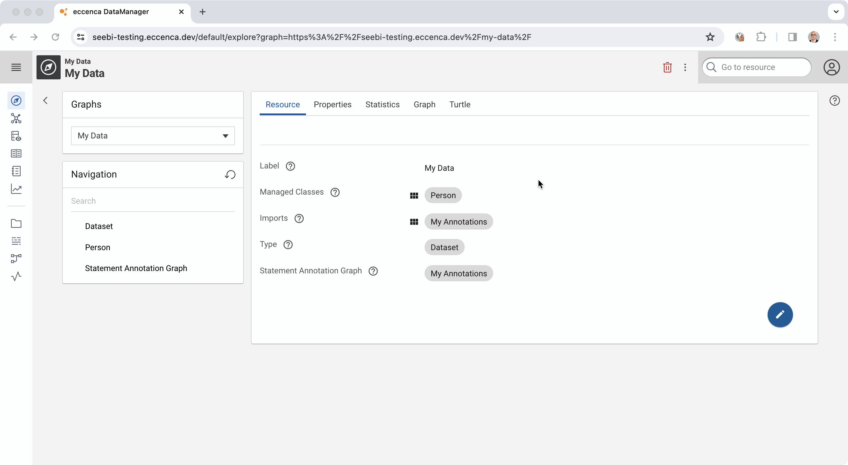 Open the graph selection and switch to your data graph where the resources exist which you want to annotate. Edit the graph description and add the property Statement Annotation Graph as well as Imports, where your select your newly created annotation graph in both fields.